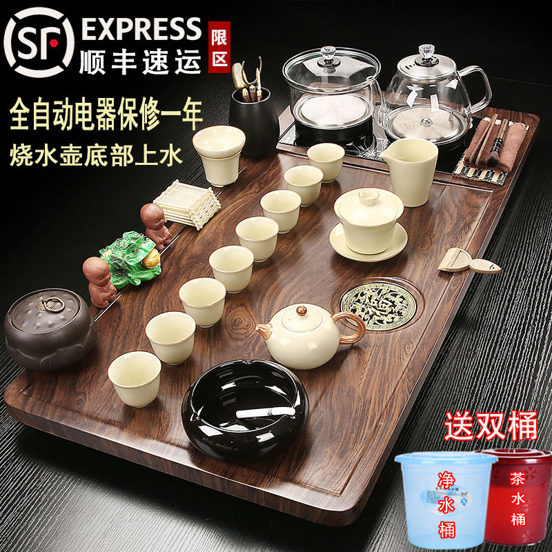 整套茶具套装 全自动烧水壶一体茶盘烧水家用喝茶茶台办公功夫泡茶