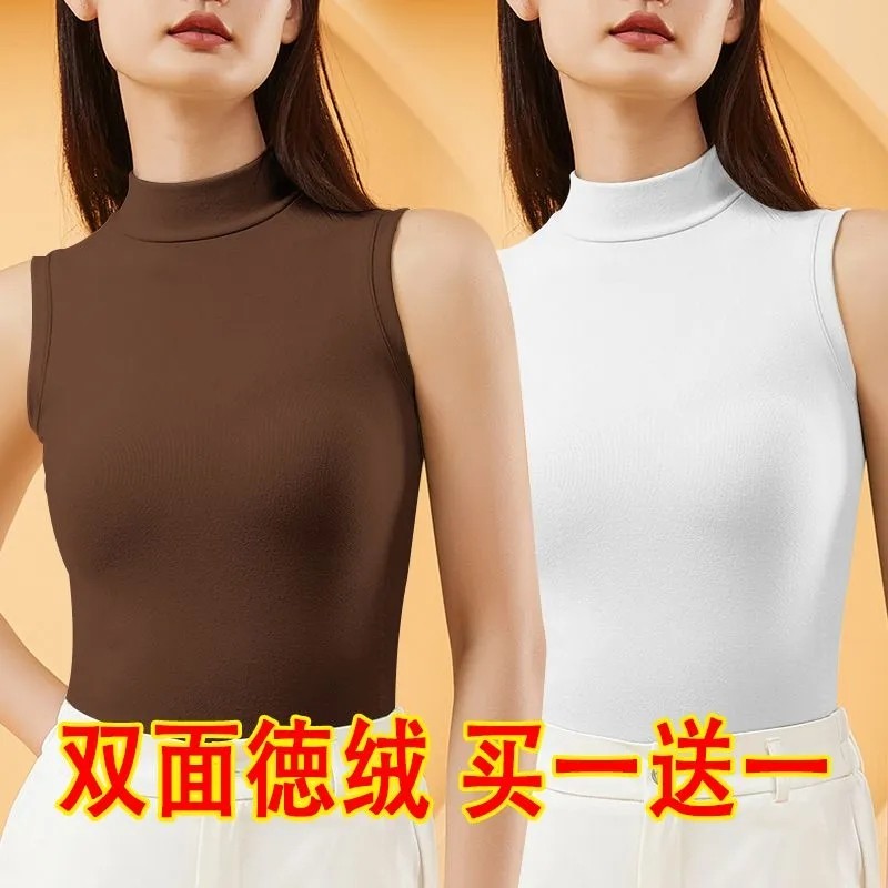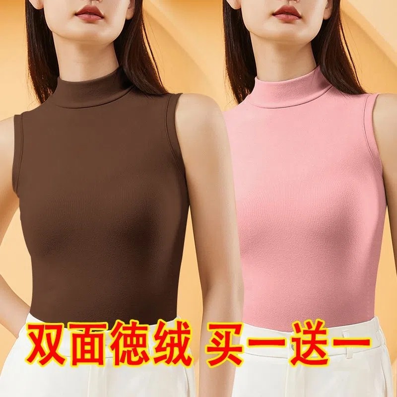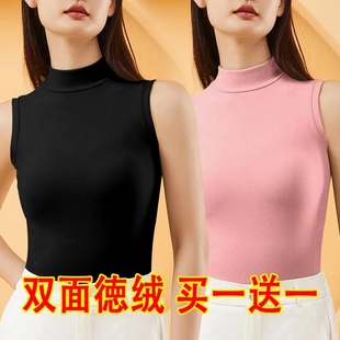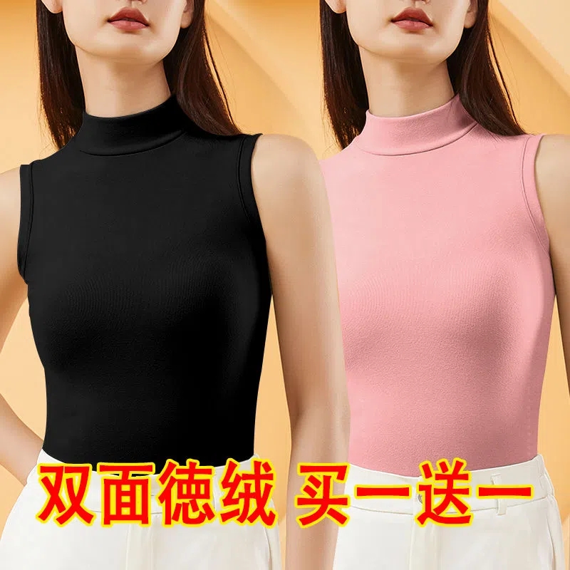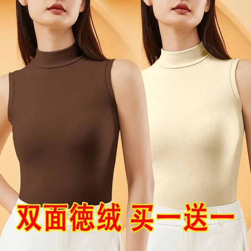 半高领打底衫 纯色圆领保暖背心女士加绒加厚秋冬季 上衣 两件装 单