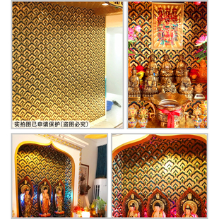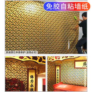 自粘墙纸佛龛墙贴自贴金色金黄色佛堂金箔反光新中式 背景壁纸贴纸