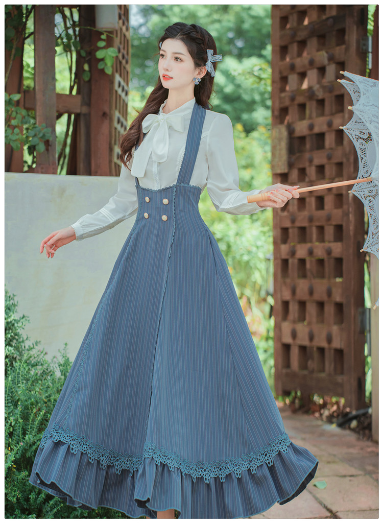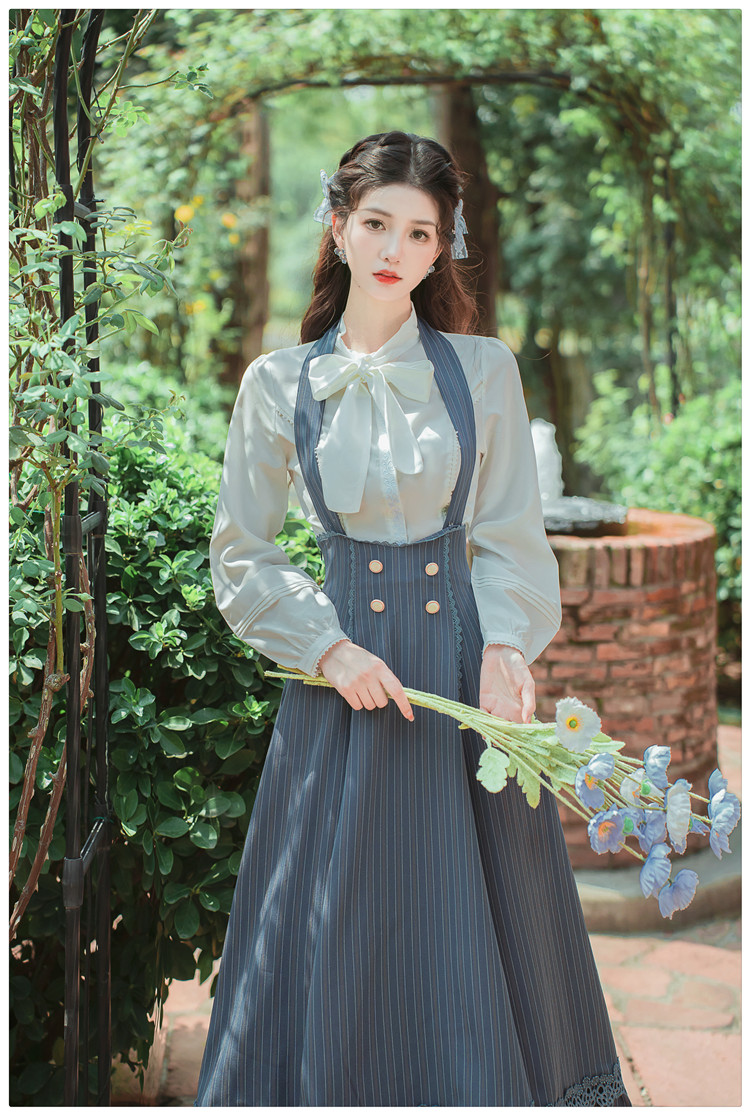 挂脖连衣裙 半身裙绑带修身 苏浅慕颜春秋季 复古赫本Lolita少女洋装