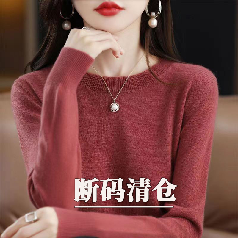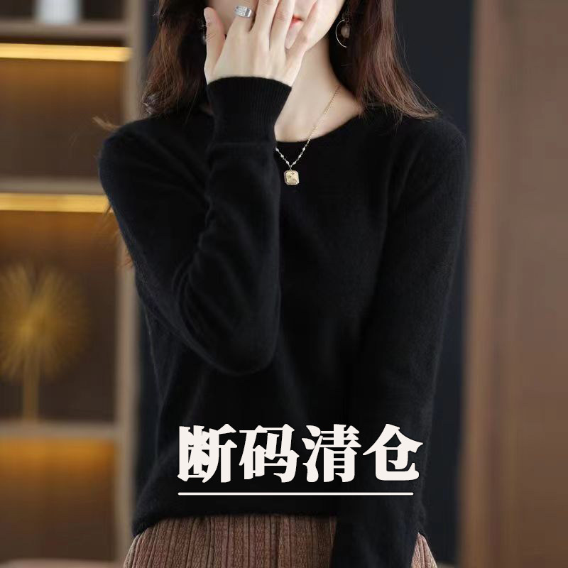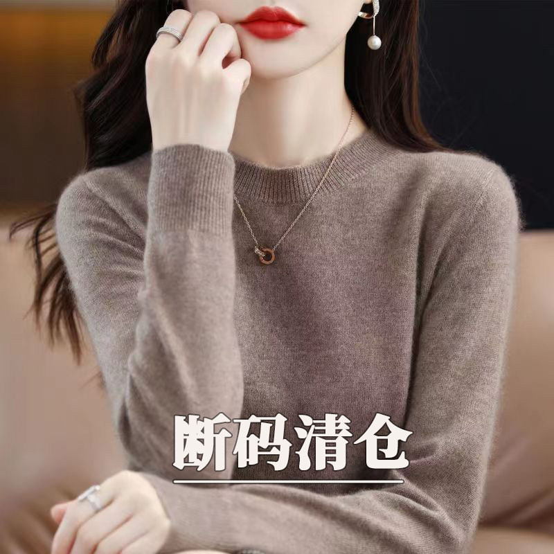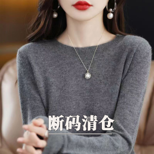 女纯色羊毛低圆领宽松毛衣内百搭秋冬针织打底衫 2025年新款 羊毛衫