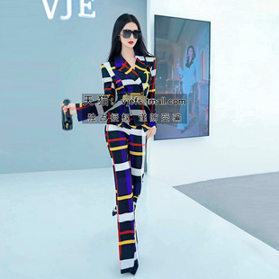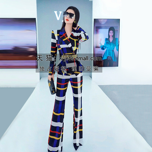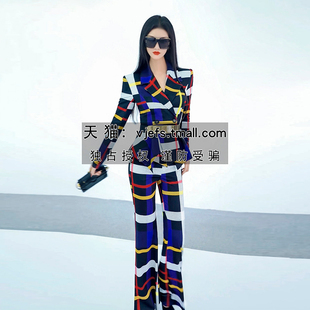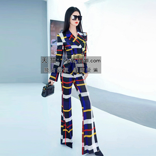 英伦风格 裙摆外套垂感休闲裤 纹帅气套装 时尚 两件套 女新款 秋季