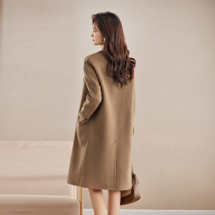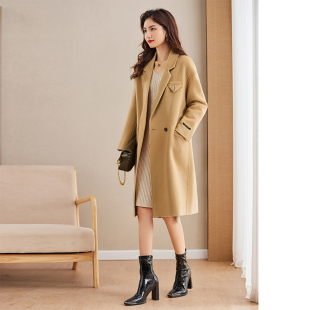休闲100%羊毛外套通勤百搭 女士双面呢大衣中长款 万丽 服饰