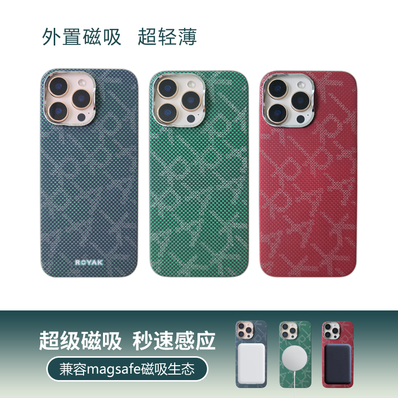 ROYAK适用新款 老钱风15promax芳纶纤维简约磁吸防摔保护套 苹果iPhone16promax凯夫拉轻薄手机壳高级感经典