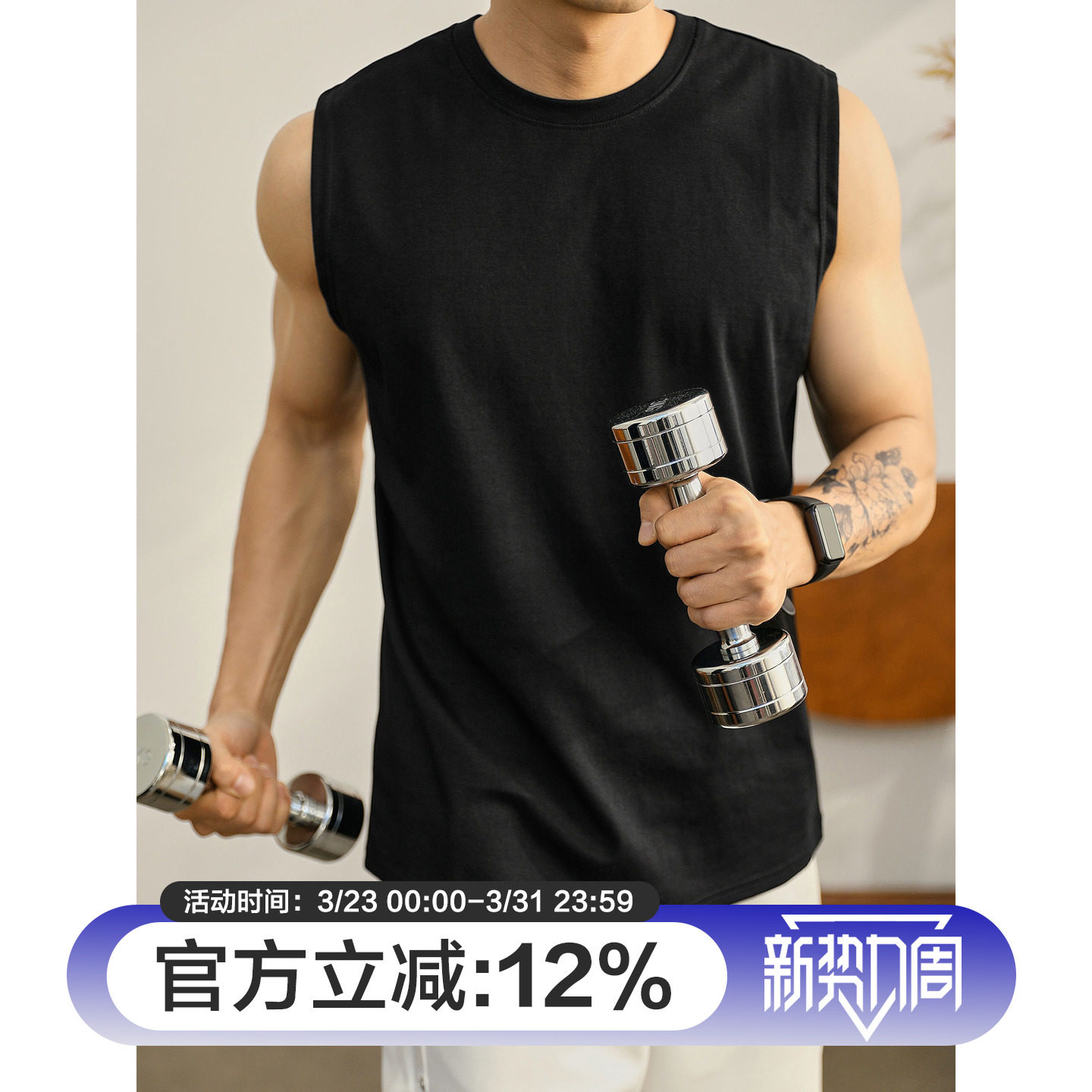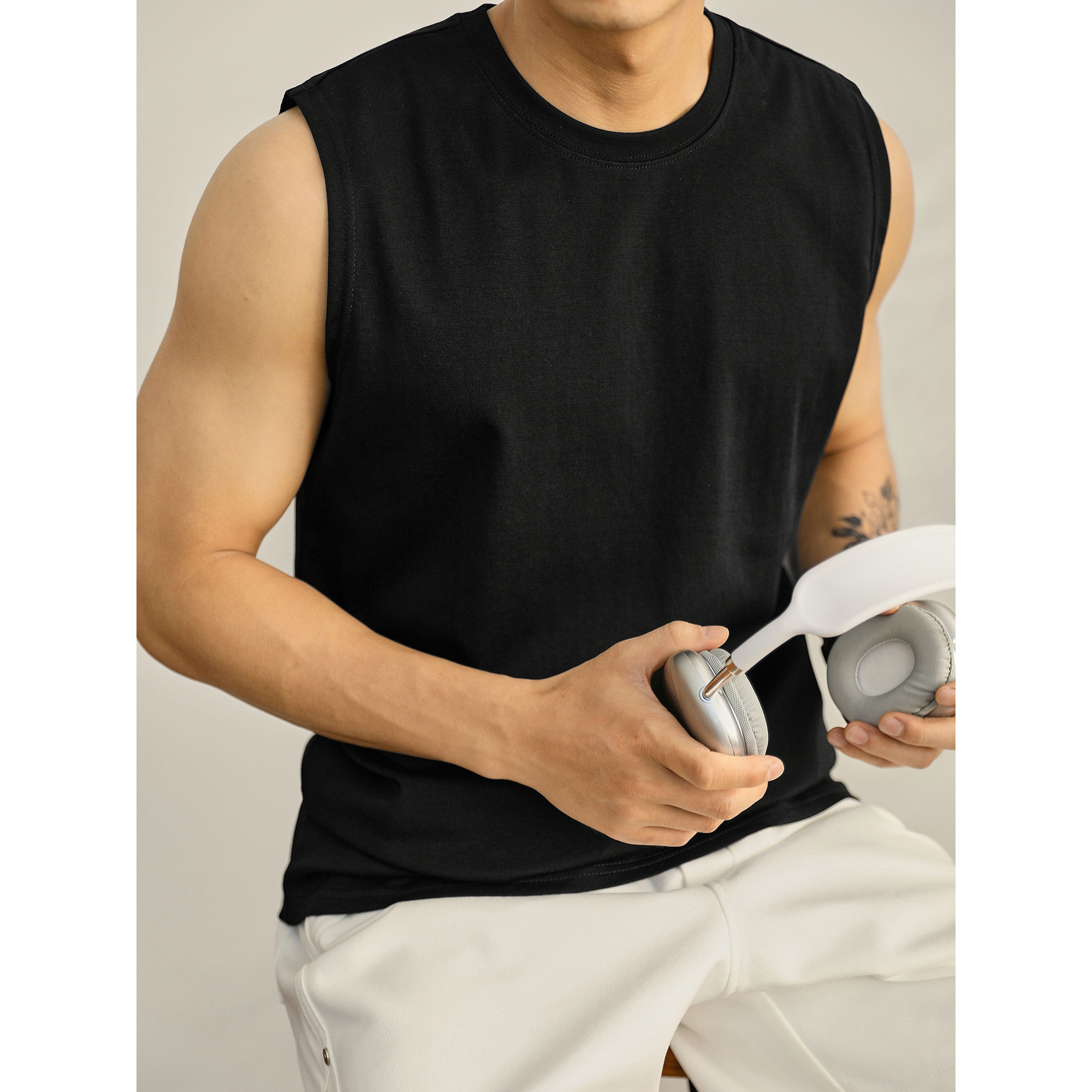 透气吸湿弹力背心夏日通勤男生坎肩汗衫 LUUD T恤衫 无袖 黑白色经典
