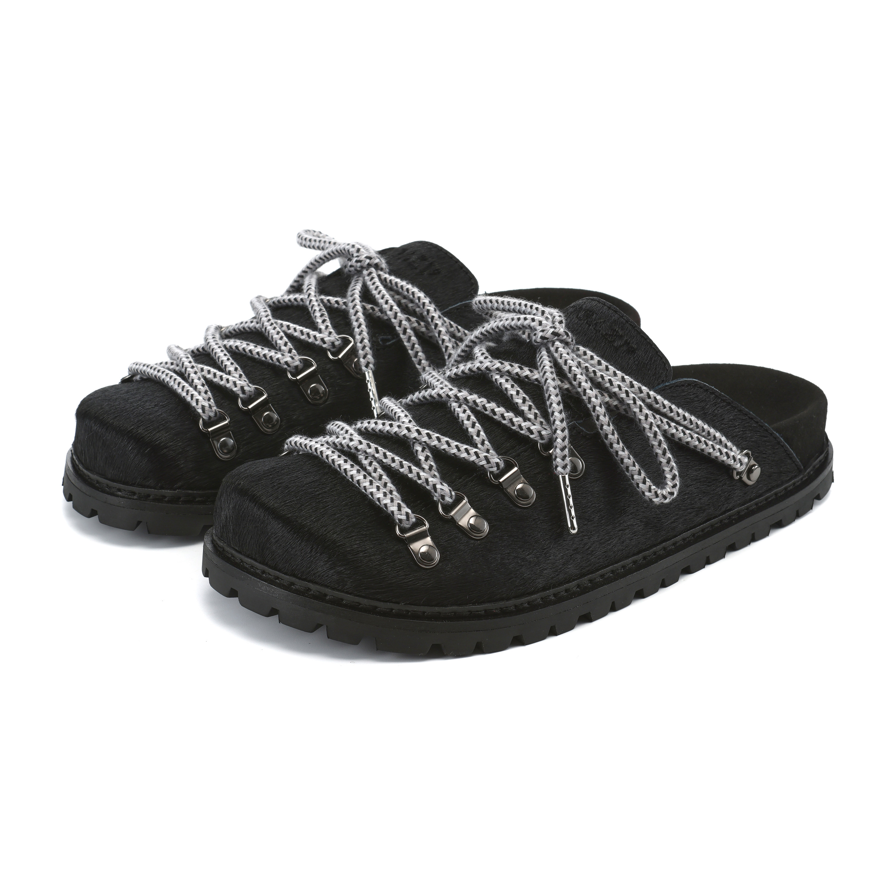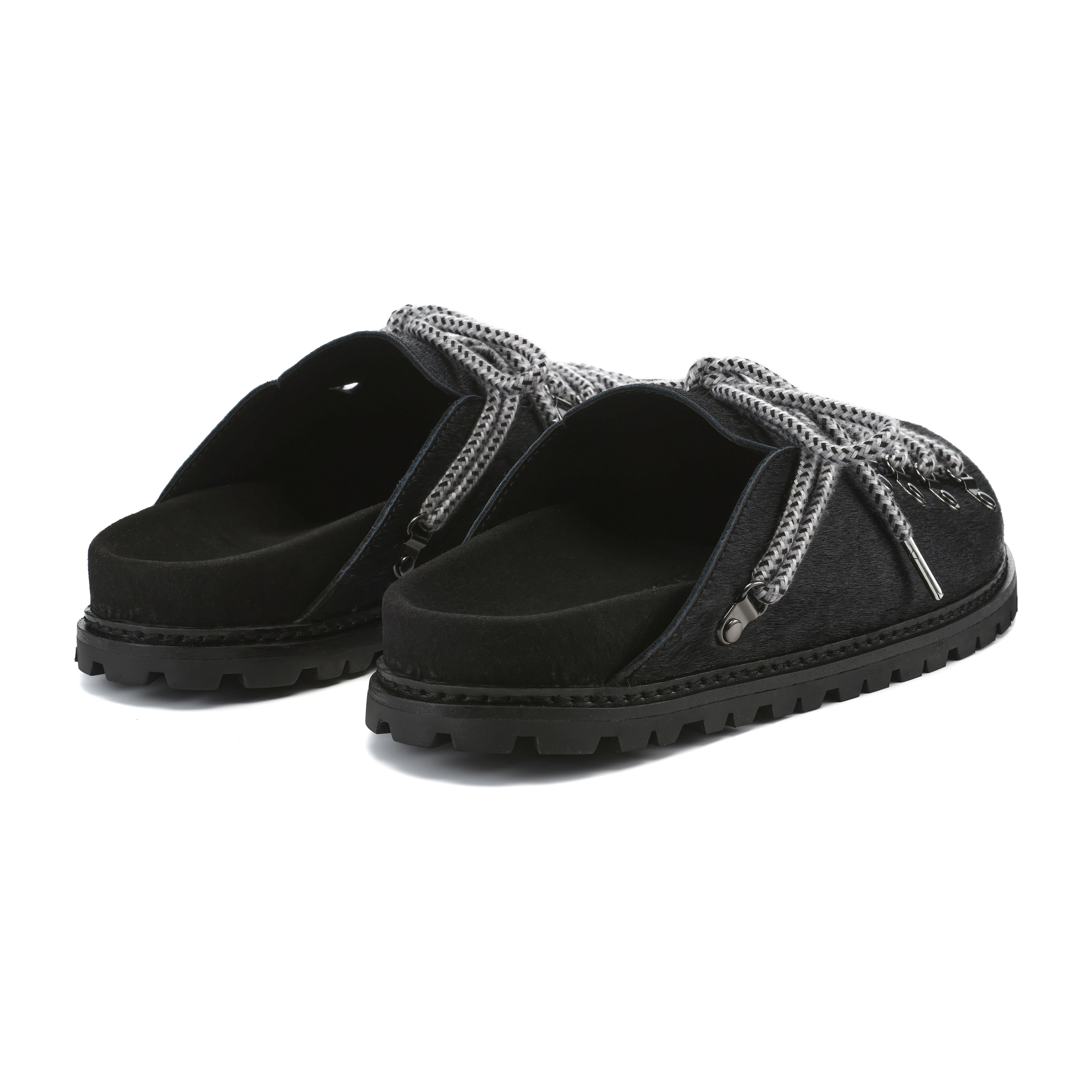 半拖懒拖鞋 新款 休闲情侣一脚蹬 男女夏季 FUGAZI黑色马毛勃肯鞋