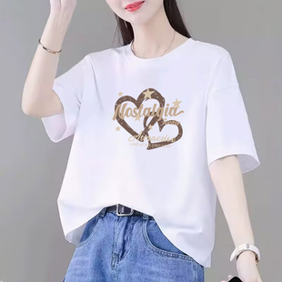 休闲打底上衣夏 宽松韩版 外贸大牌清仓100%纯棉短袖 T恤女2025新款