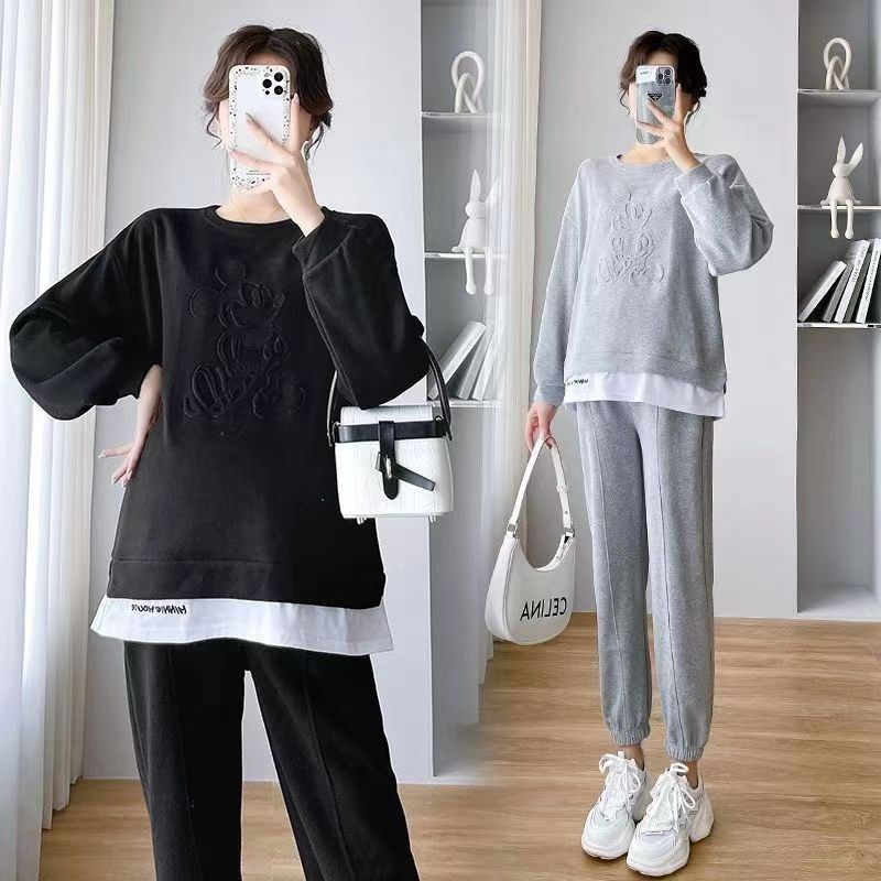 宽松小个子上衣女遮肚洋气两件套国风孕妈 秋季 孕妇卫衣时尚 套装