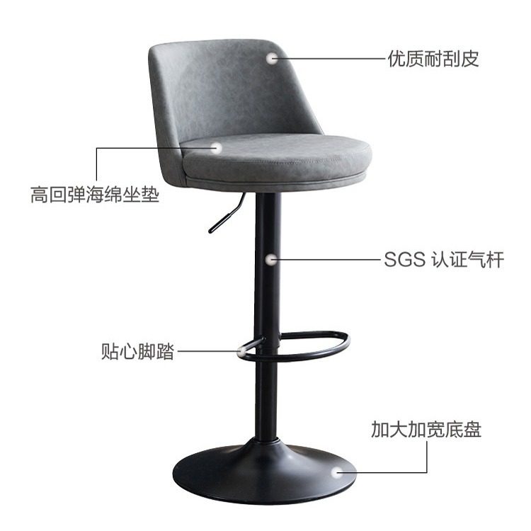 2025新款 现代前台吧台椅高脚凳升降靠背家用餐厅酒吧旋转椅子 时尚