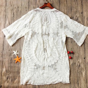 沙滩外套泳衣外搭罩衫 z开衫 沙滩衣 中长款 海边渡假蕾丝宽松七分袖