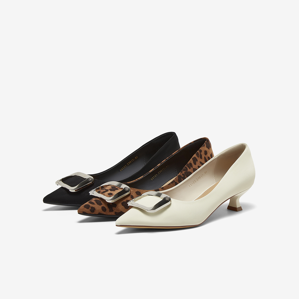 简约通勤尖头细跟浅口女单鞋 商场同款 E5121AQ5 新款 百思图2025春季