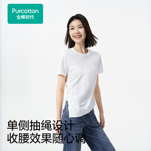 女士凉感水光棉T恤夏装 新款 纯棉T 上衣2025年夏季 全棉时代女士短袖