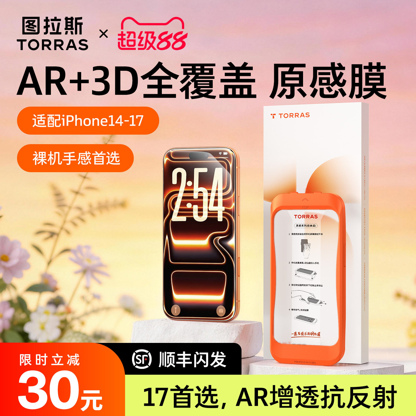 图拉斯原感膜AR抗反射适用苹果17ProMax钢化膜iPhone手机17pm款 Air全覆盖贴膜14 16保护3D热弯15增透14Pro新款