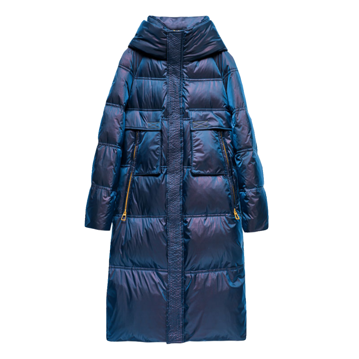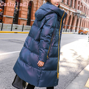 CATHYLADI亮面羽绒服女中长款 气质高端连帽白鸭绒外套 2025年冬季