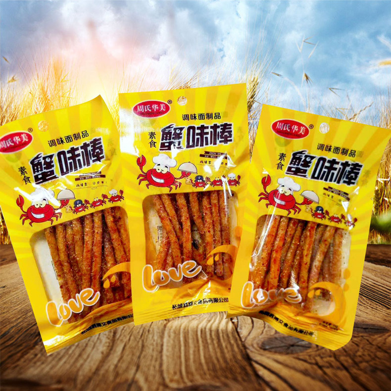 周氏华美蟹味棒60袋辣条麻辣棒8090后童年怀旧零食面筋蟹黄面