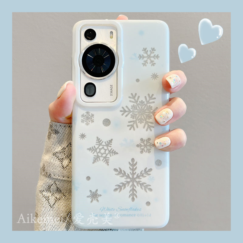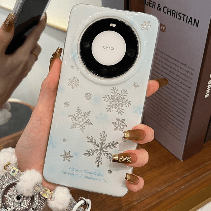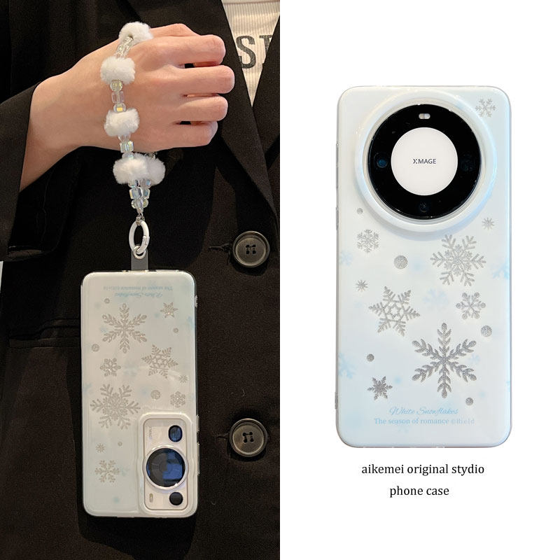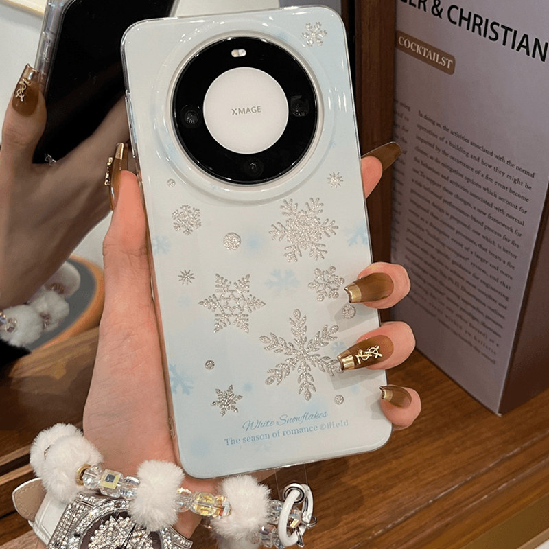 适用华为mate80pro 氛围简约少女蓝色闪粉雪花双层mate60pro链条mate5040pro毛球挂绳p60pro 手机壳mate70pro