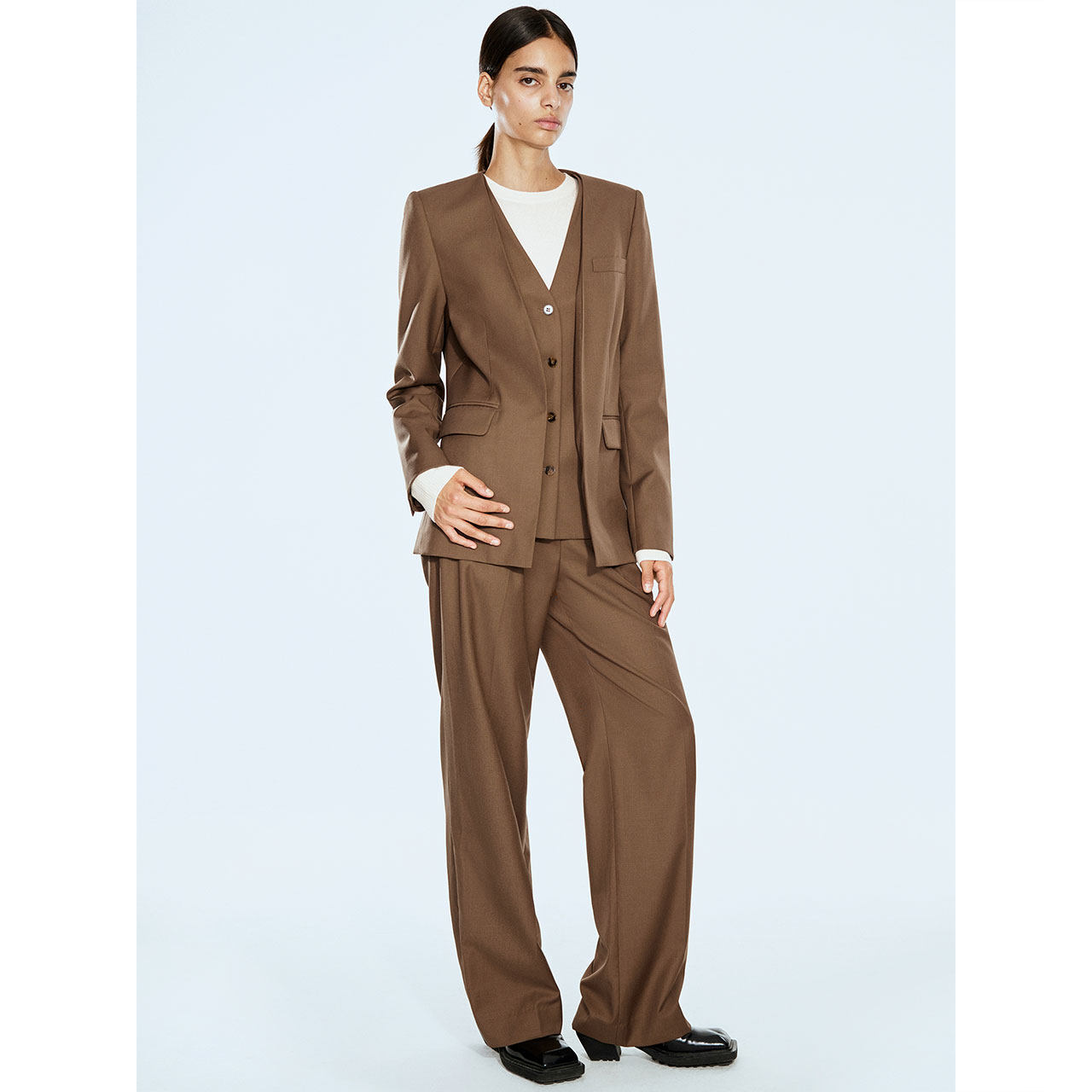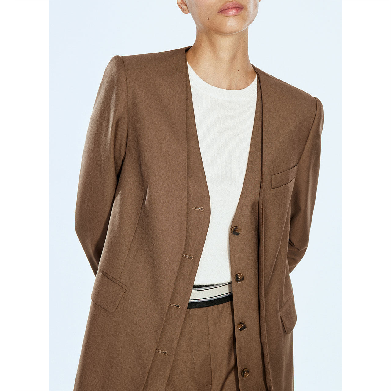 直筒西裤 COVERINS 外套女 假两件设计气质无领西装 辛芷蕾同款
