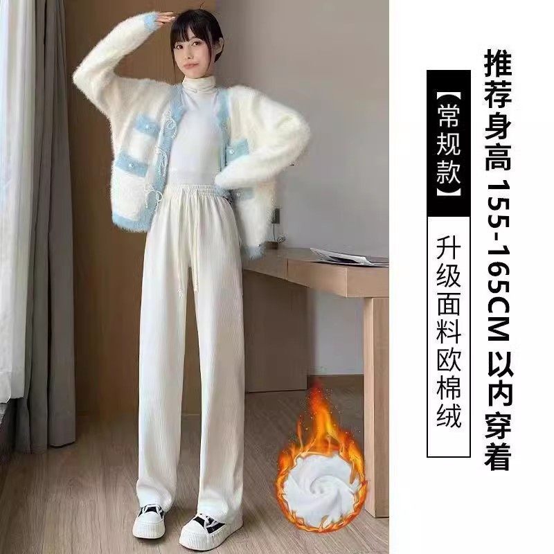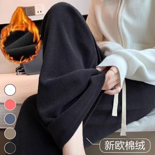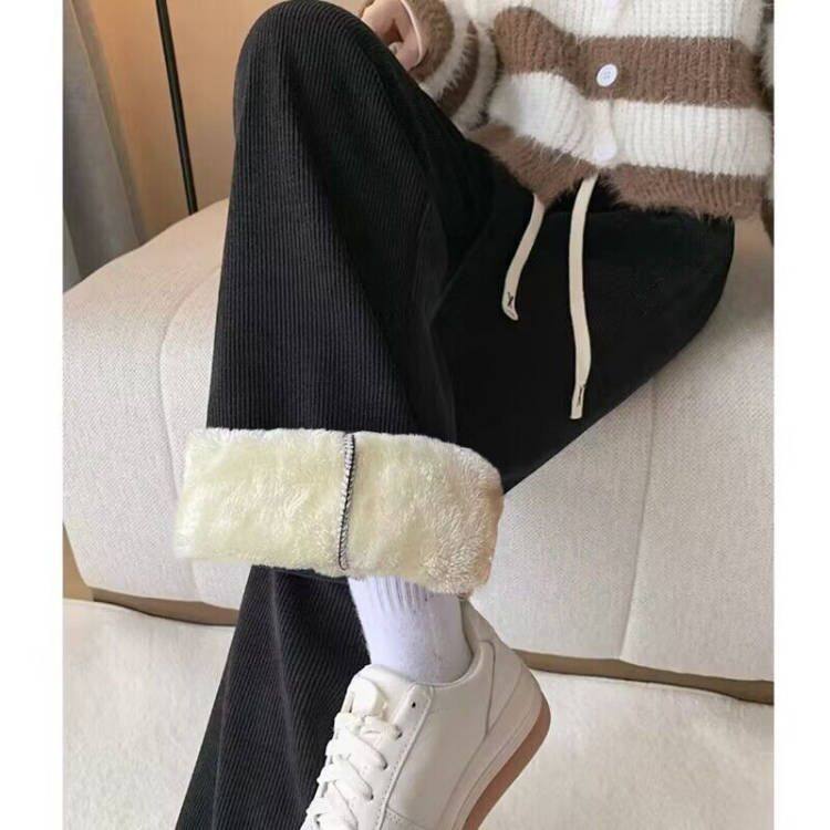 潮 加绒加厚保暖抗寒外穿宽松休闲灯芯绒阔腿裤 羊羔绒裤 子女秋冬季