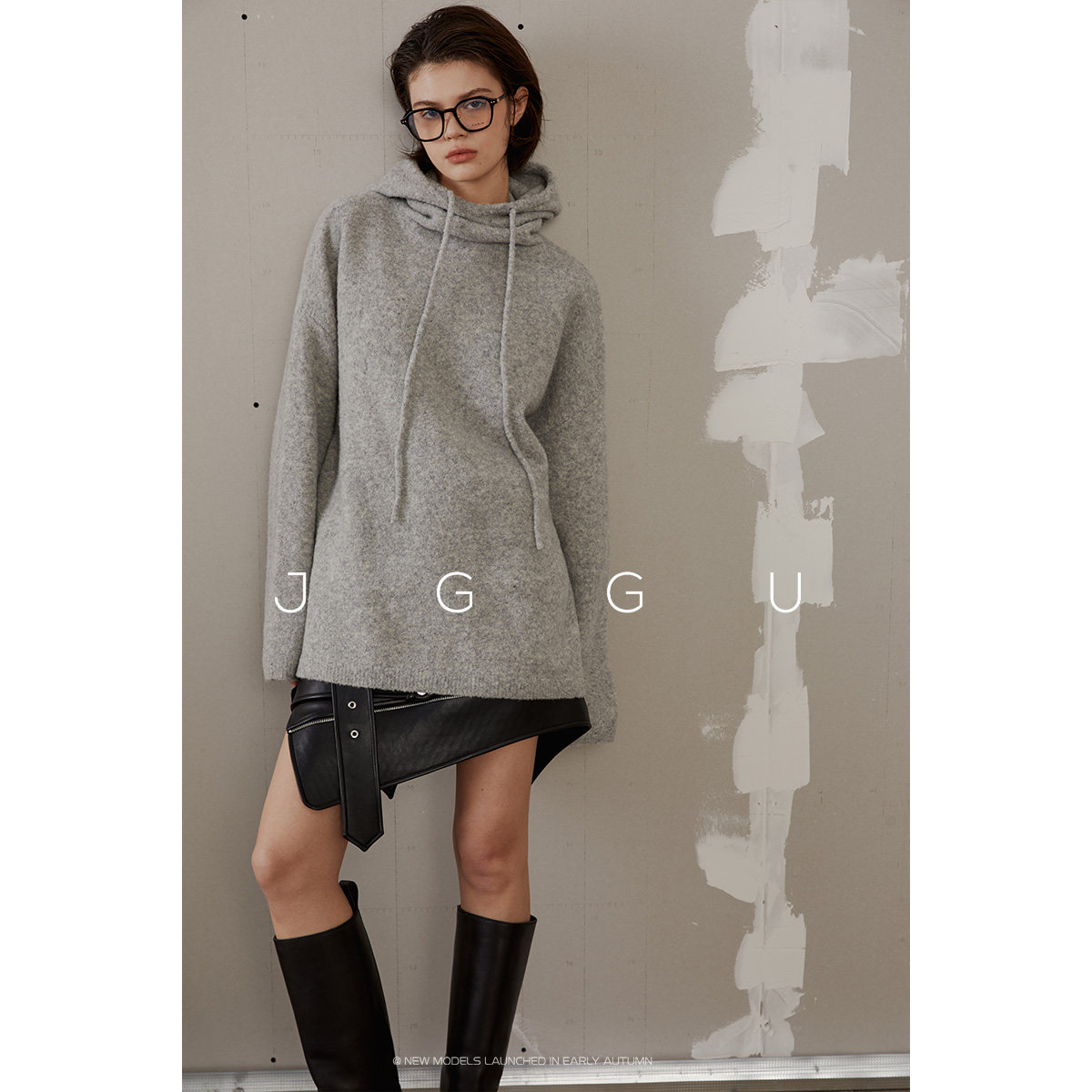 保暖宽松舒适堆领连帽羊毛针织 冬季 晶咕黑标JGGU全尺码 款