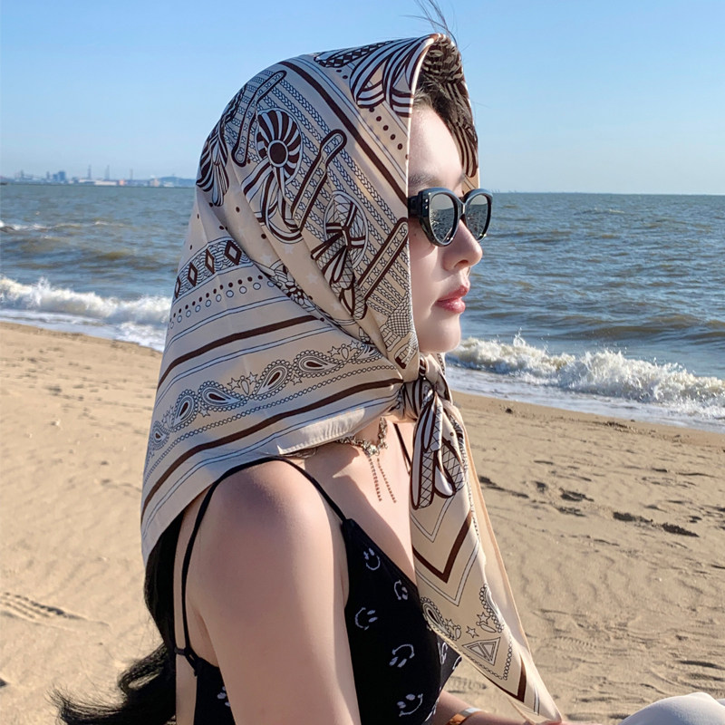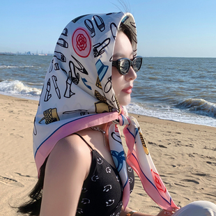 抹胸防晒包头巾高级感披肩 围巾洋气时尚 90大方巾丝巾女士夏季 薄款