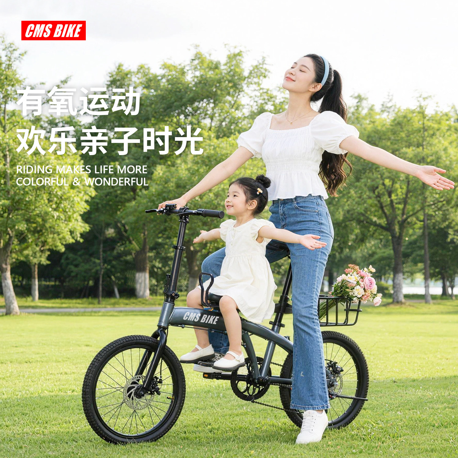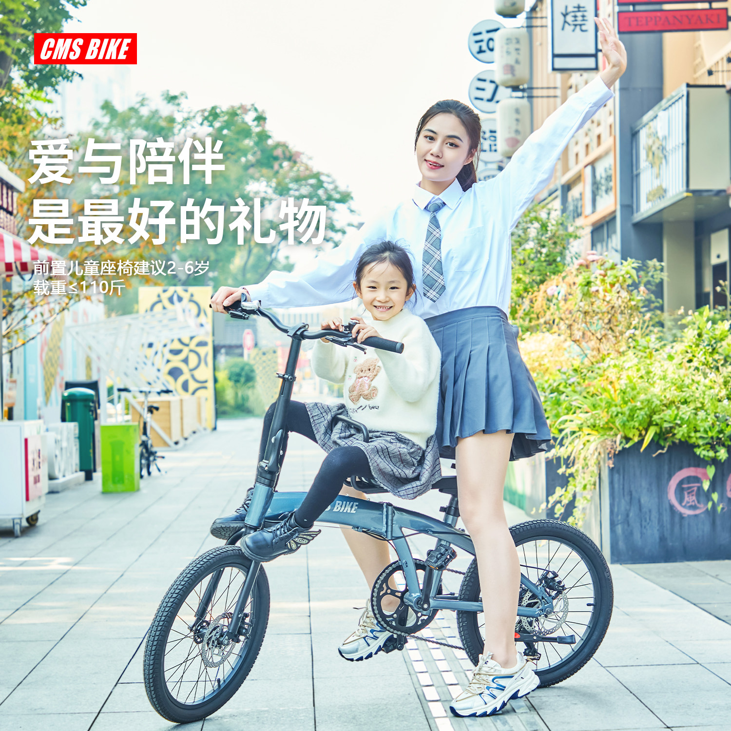 CMSBIKE亲子折叠自行车超轻便携变速男女折叠脚踏载遛娃自行单车