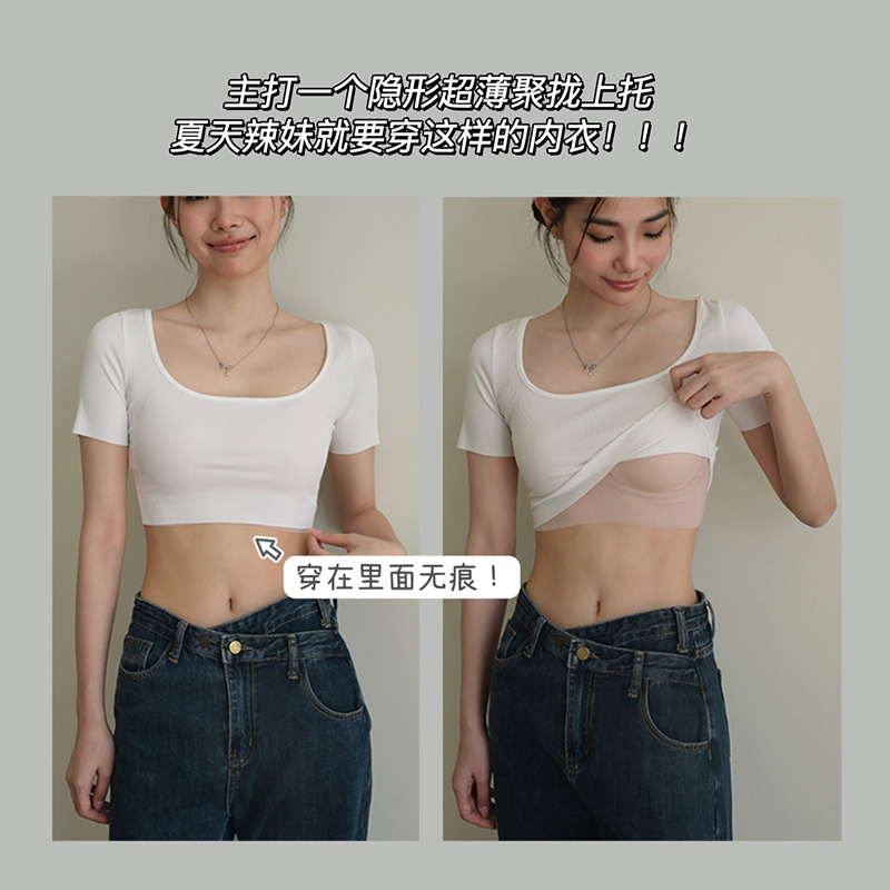 背心胸罩深肤聚拢文胸 薄款 白T不透 隐形无痕粉底液女士内衣夏季