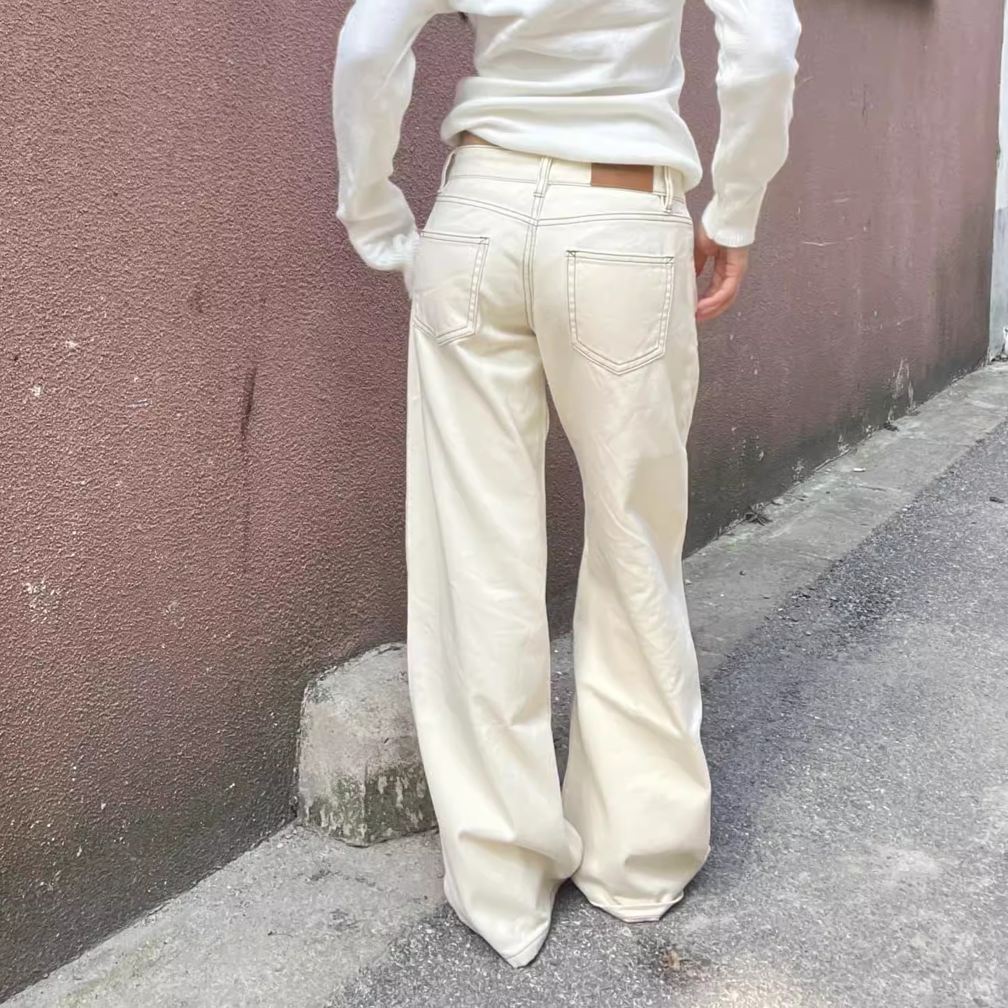 TheDINA2025秋新款 女 米白低腰牛仔宽松显瘦小个子简约百搭直筒裤