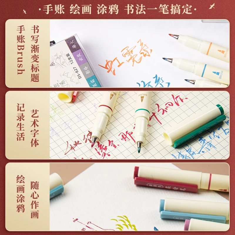 点石柔绘笔827全套彩色勾线笔美术专用软绘笔bursh书法软头新国色秀丽笔自带笔锋画画笔钢笔式 小楷手账笔soft