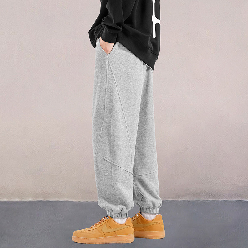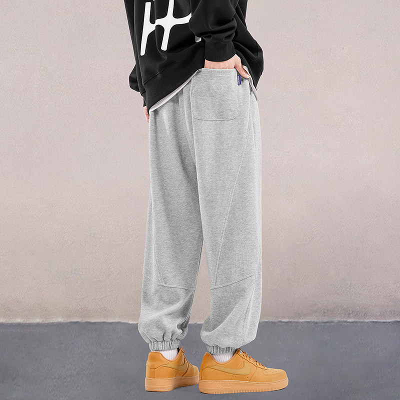 潮流针织束脚裤 灰色卫裤 宽松休闲运动加绒长裤 秋冬季 男生2026新款