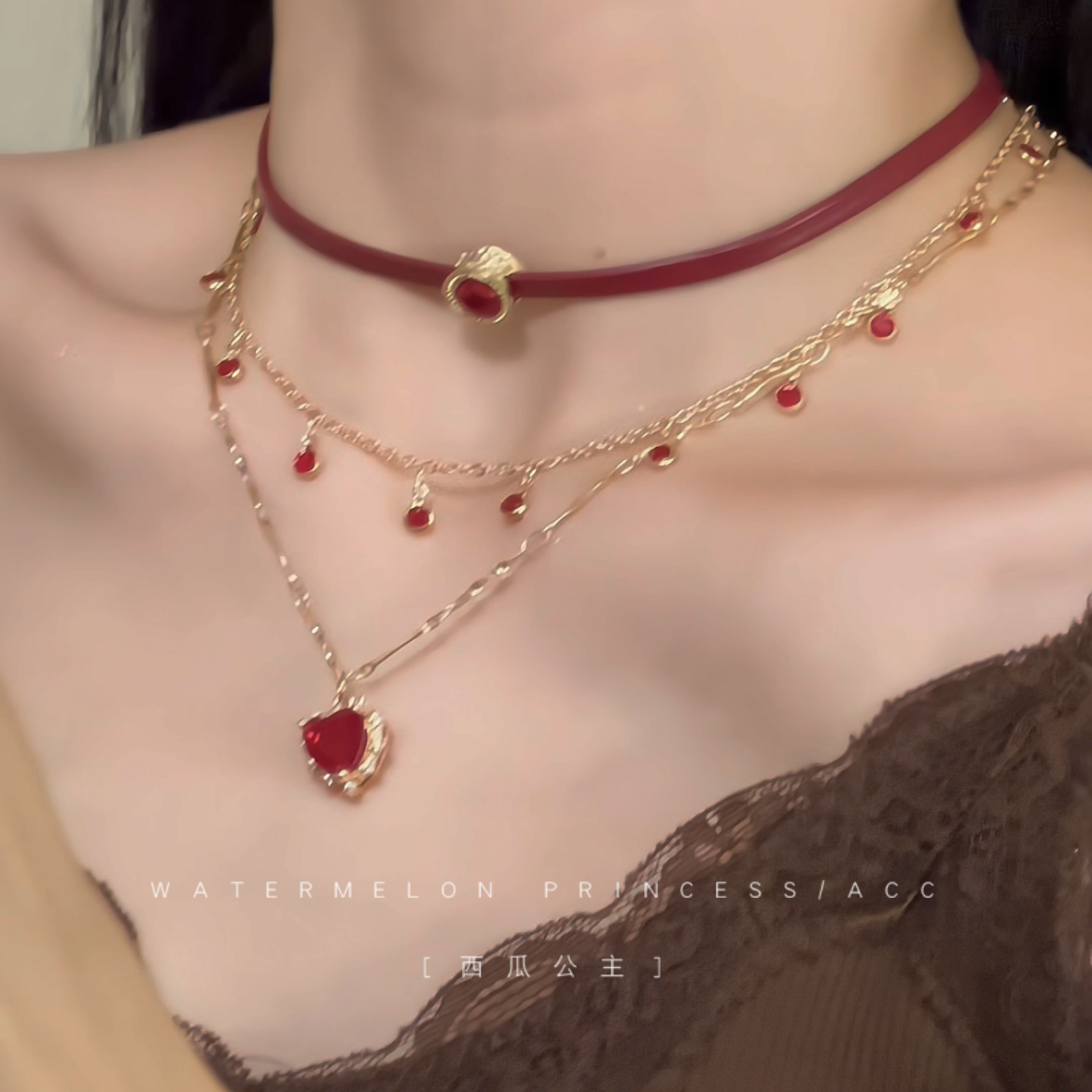 天蕾系量产型双层可拆choker蕾丝abs珍珠爱心项圈lolita颈链项链