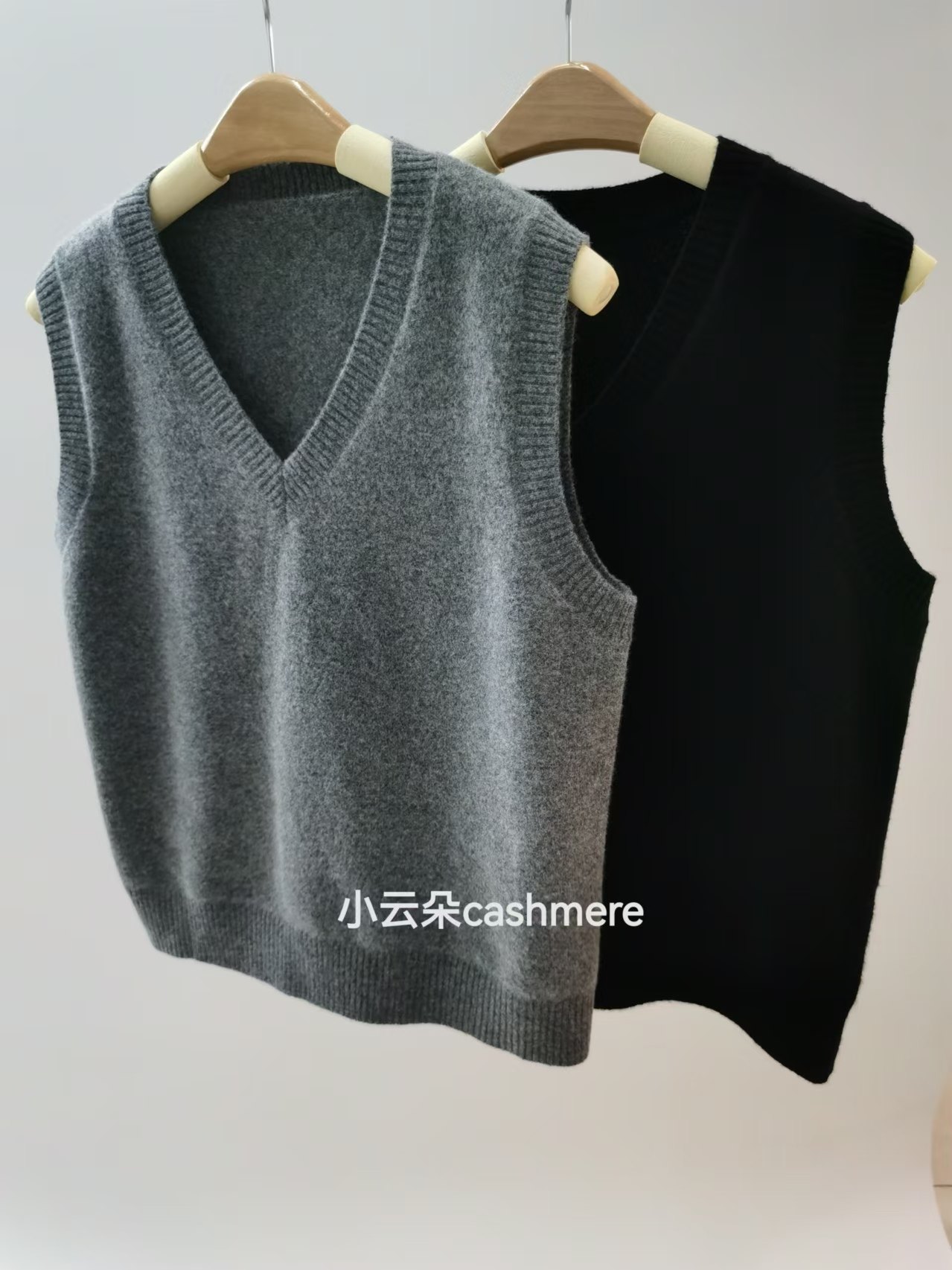 康赛妮可机洗羊毛羊绒V领休闲百搭背心针织马甲ji简叠穿