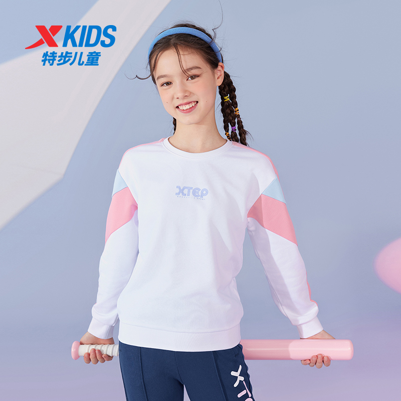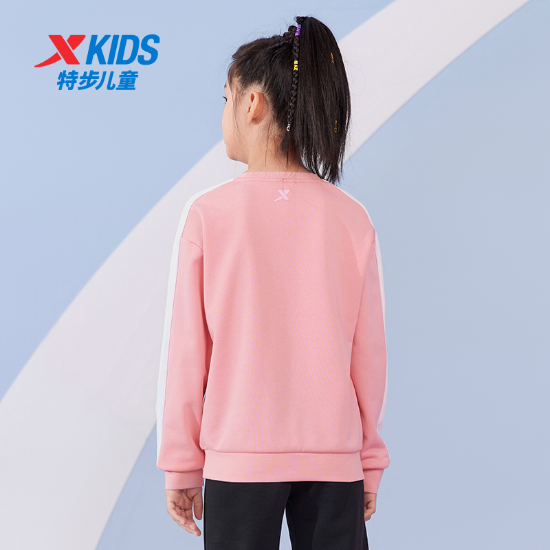 特步童装 女童套头卫衣秋冬儿童上衣休闲百搭运动中大童拼接色卫衣