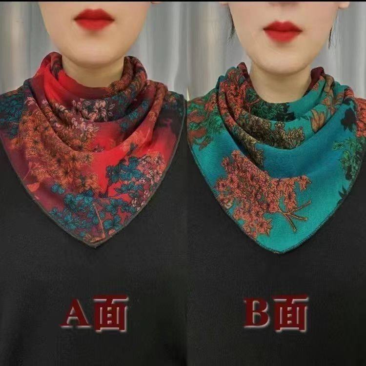 奶奶中老年围脖送长辈礼盒装 羊毛老人围巾送妈妈款 中年洋气女冬季