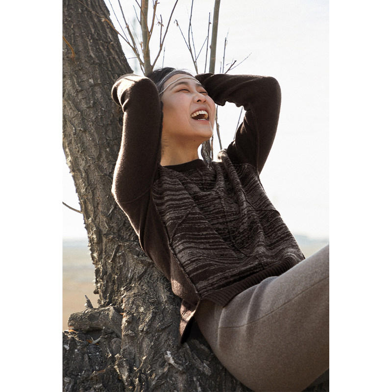 复古提花牦牛绒套头毛衫 Say 咖啡奶丝 然