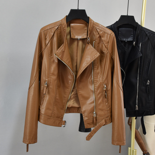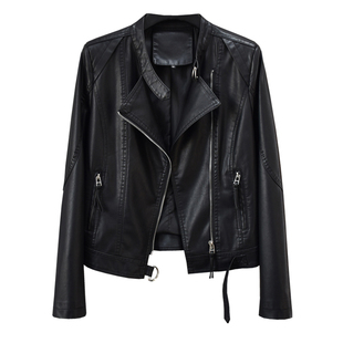 暗夜黑立领PU皮衣外套女MOFAN摩凡2025秋冬酷飒风皮夹克短款 显瘦