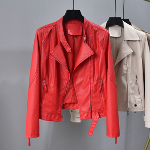 痞帅小众2025李承协同款 型翻领夹克外套皮衣潮 pu皮第红色短宽版