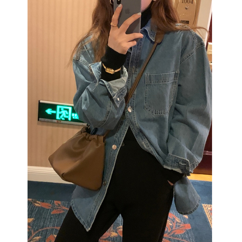 上衣复古衬衫 港味宽松显瘦长袖 胖妹妹牛仔外套女叠穿秋冬新款 大码