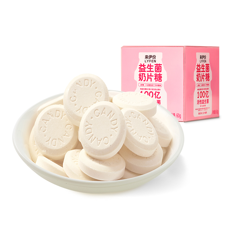 来伊份益生菌奶糖片酸奶味60g 2糖果零食奶味休闲干吃奶片
