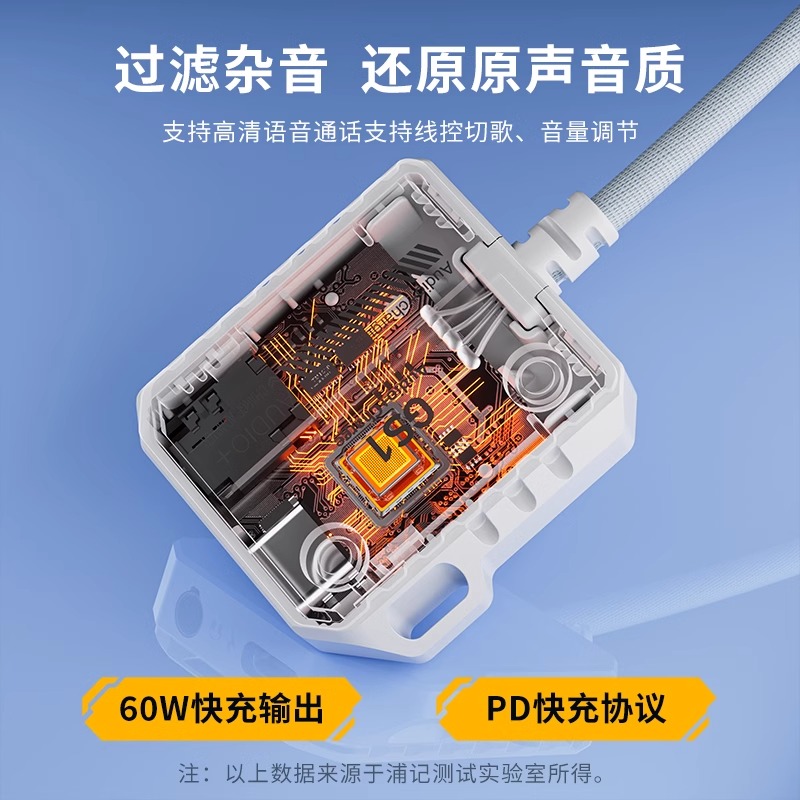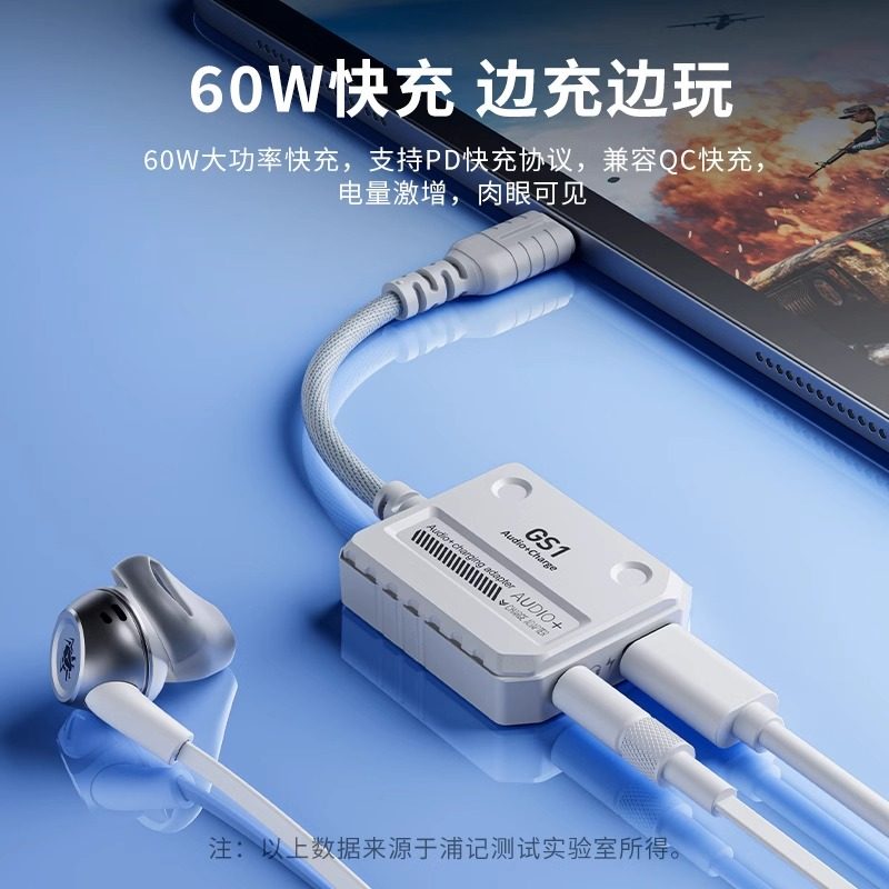 max平板手机华为苹果60W快充电二合一3.5mm耳麦吃鸡游戏 iphone15pro 耳机转接器typec边冲边玩ipadpro mini6