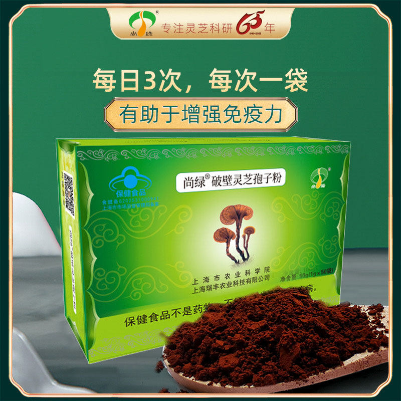 上海农科院尚绿绿盒破壁灵芝孢子粉1g 50袋有助于增强免疫力蓝帽