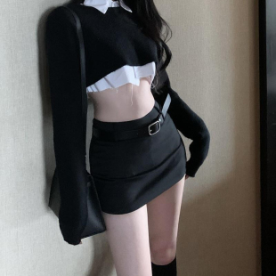 黑色包裙女秋2026新款 弹力紧身一步半身裙高腰性感辣妹包臀裙短款