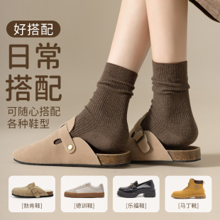袜子女中筒袜纯棉春秋咖色美拉德堆堆袜秋冬搭配小皮鞋 长袜 勃肯鞋