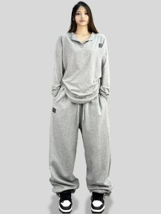 休闲 女刺绣宽松直筒跳舞hiphop长裤 ROKBBK-K 布韩爵士嘻哈运动裤