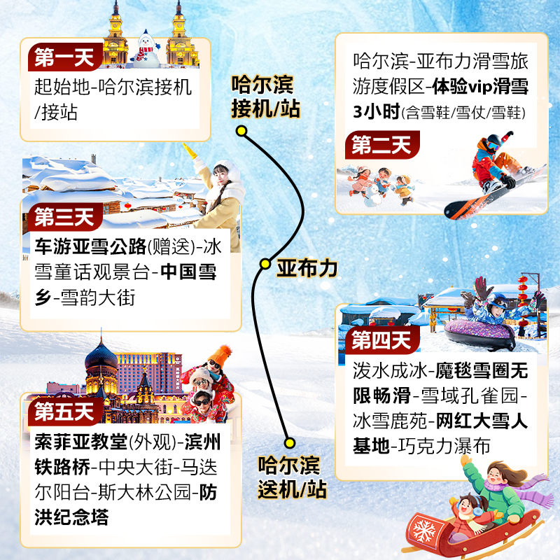 纯玩0自费小团 哈尔滨旅游雪乡长白山漠河5天4晚跟团游 五钻酒店