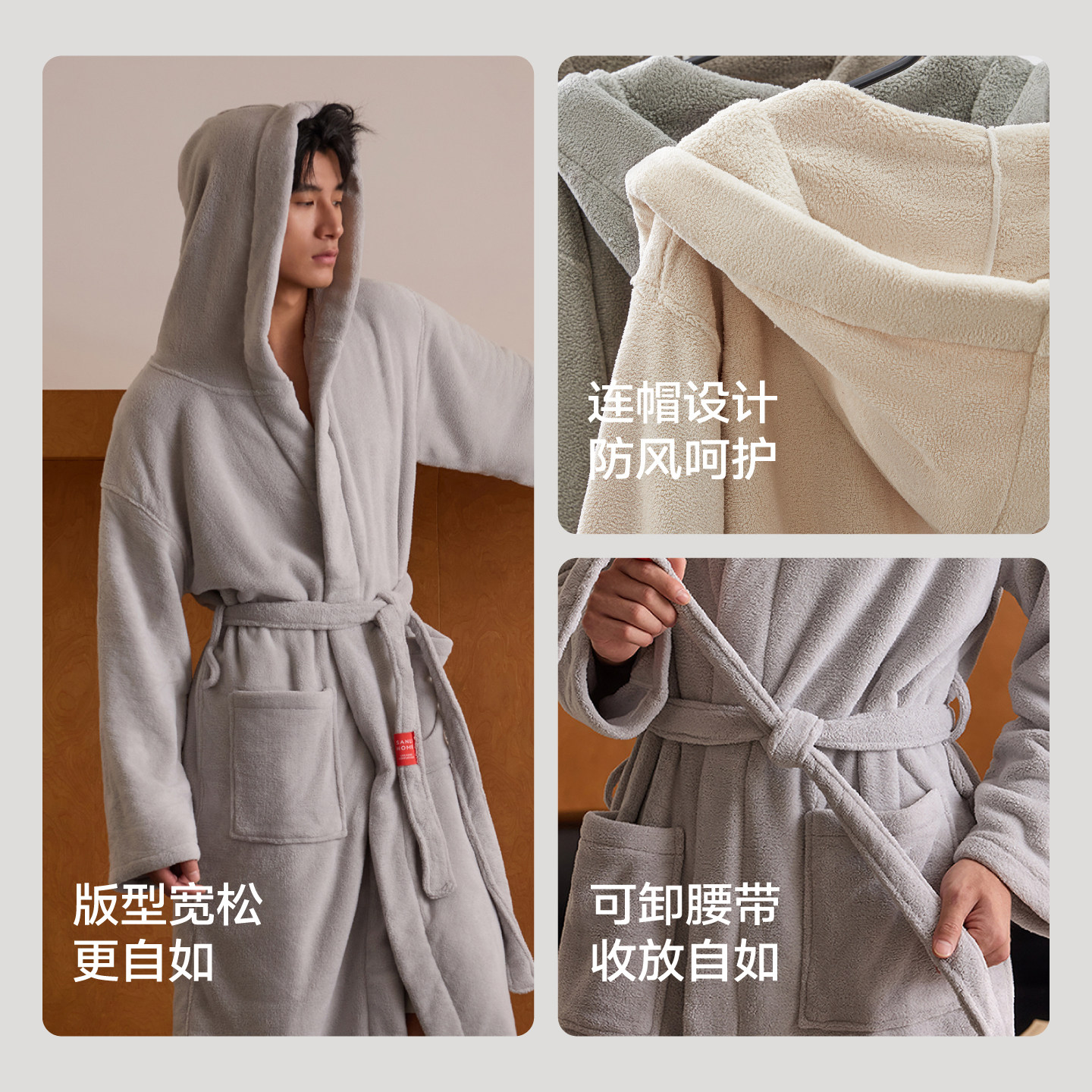三利浴袍男吸水速干冬成人浴巾酒店浴衣情侣可穿睡袍长款 a类毛巾