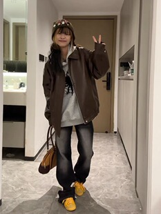 加绒加厚机车风PU皮夹克潮牌 秋冬季 美式 棕色皮衣外套男女2023新款