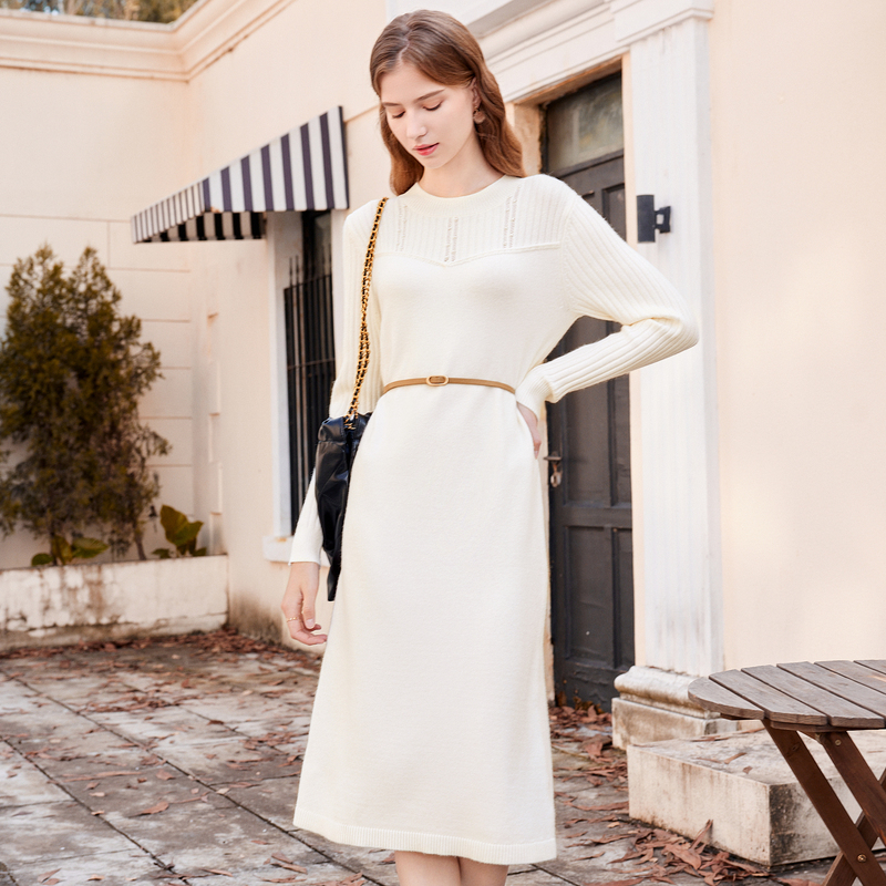 针织毛衣连衣裙子 收腰显瘦中长款 betu百图冬季 新款