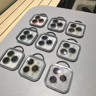 适用于苹果17 13高清透明金属带钻彩膜 16ProMax镜头膜iPhone15摄像头圈14
