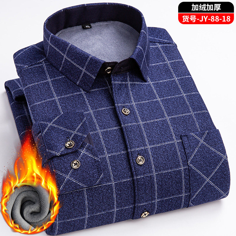 印花格子中年休闲加绒加厚衬衣爸爸装 冬季 衬衫 加绒保暖长袖 男士