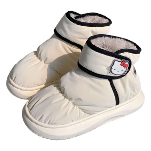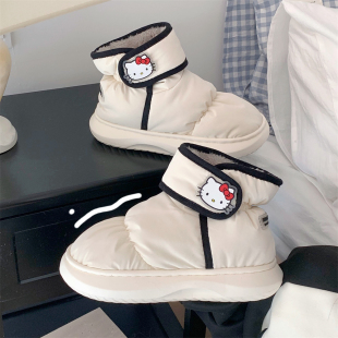 细细条 女冬外穿魔术贴雪地靴 可爱HelloKitty凯蒂猫防水面包棉鞋